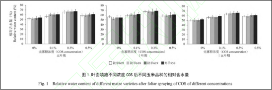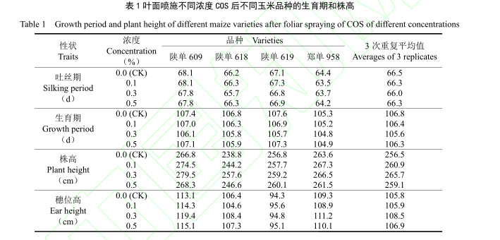 研究人員將殼寡糖稀釋成0.1%、0.3%、0.5%的不同濃度后,在五葉期、十葉期和十五葉期分 3 次葉面噴施,與清水對照組比較,研究殼寡糖對不同玉米雜交種抗旱相關生理指標、產量及其構成因素的影響。具體研究結果如下: