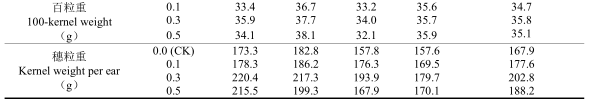 4.試驗表明,在干旱脅迫下葉面噴施殼寡糖對玉米穗行數(shù)和百粒重的影響不顯著,而通過對行粒數(shù)的影響而影響穗粒重。
